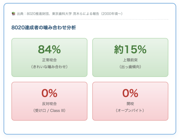 【従来の研究】8020達成者に開咬・反対咬合が「0%」という事実