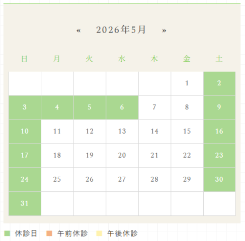 【5/2~5/6】ゴールデンウィーク休診日程のお知らせ