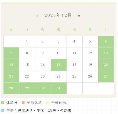 12月と来年1月の休診日についてお知らせいたします。