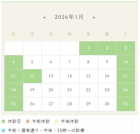 9:00~12:00/14:00~18:00 休診日:土曜・日曜・祝祭日
